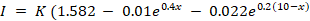 I = K (1.582 - 0.01e0.4x - 0.022e0.2(10-x)